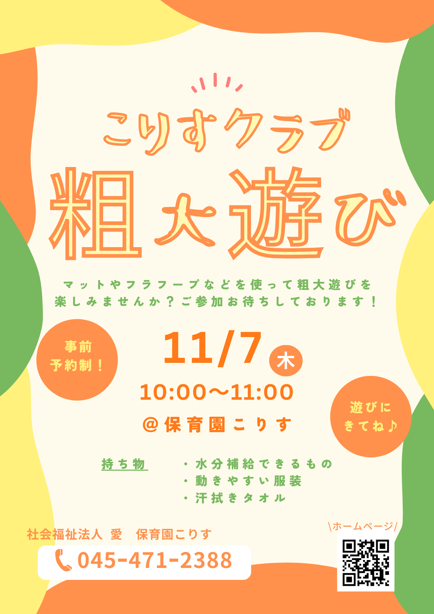 11月7日(木)に「粗大遊びを楽しもう!」を開催します!